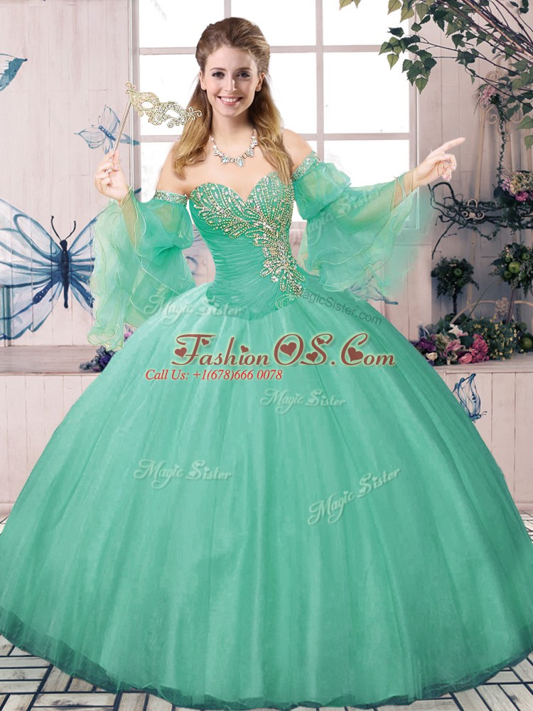 Apple Green Sleeveless Tulle Lace Up Sweet 16 Dress for Sweet 16 and Quinceanera