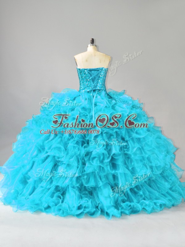 Most Popular Ball Gowns Quince Ball Gowns Aqua Blue Sweetheart Organza Sleeveless Floor Length Lace Up