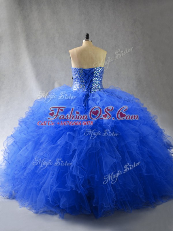 Elegant Royal Blue Lace Up Sweet 16 Dresses Beading and Ruffles Sleeveless Floor Length