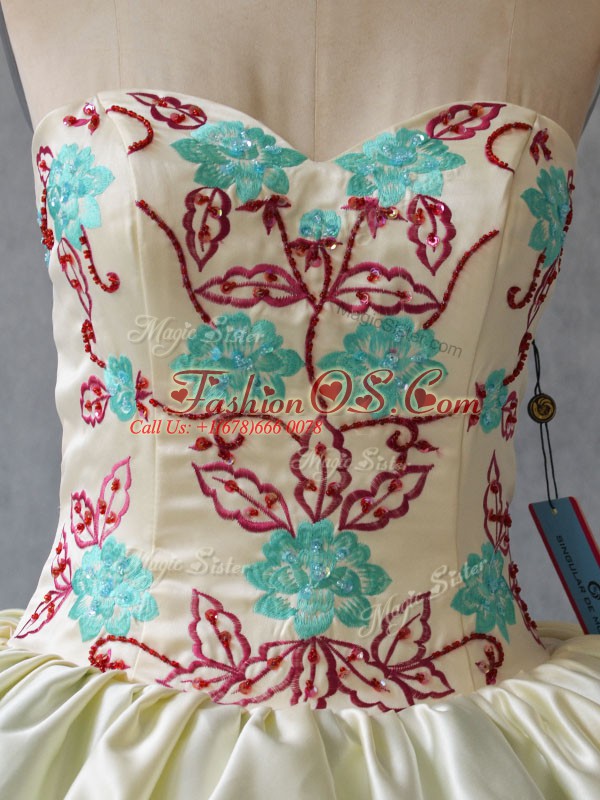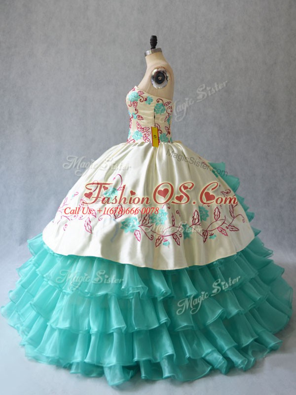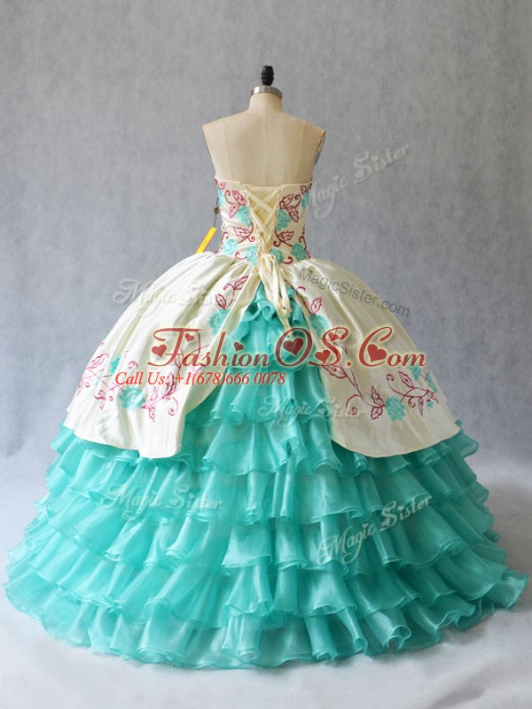 Aqua Blue Ball Gowns Embroidery and Ruffled Layers Quinceanera Dresses Lace Up Satin and Organza Sleeveless Floor Length