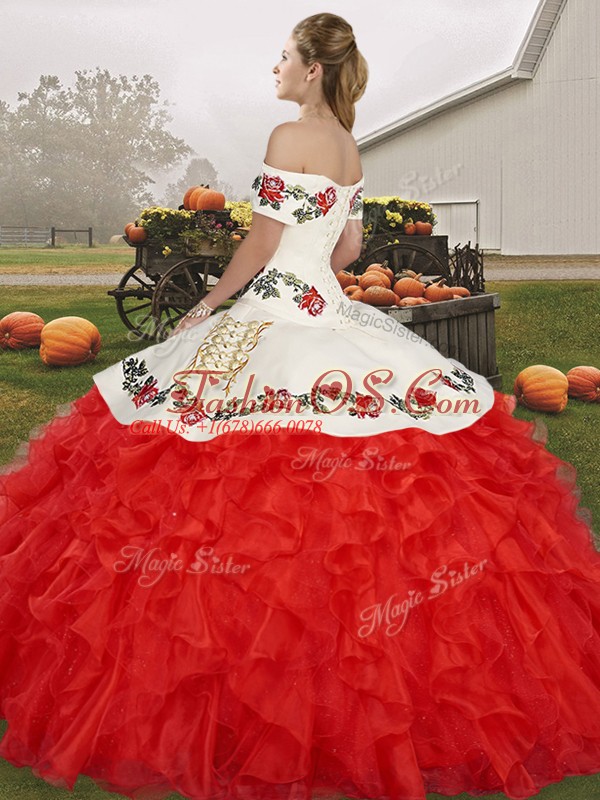 Suitable Purple Lace Up 15th Birthday Dress Embroidery and Ruffles Sleeveless Floor Length