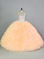 Glamorous Sleeveless Organza Floor Length Lace Up Quinceanera Gowns in Fuchsia with Embroidery and Ruffled Layers