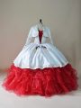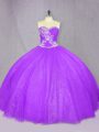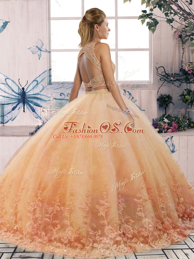 Pretty Sweep Train Two Pieces Ball Gown Prom Dress Turquoise Scalloped Tulle Sleeveless Backless