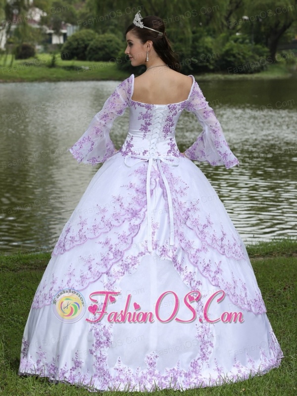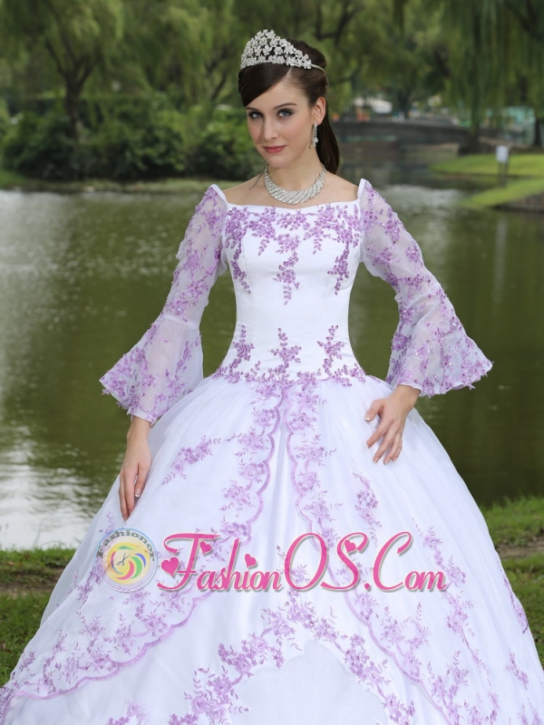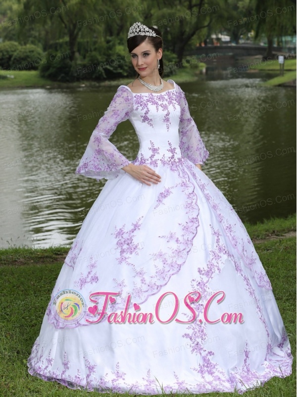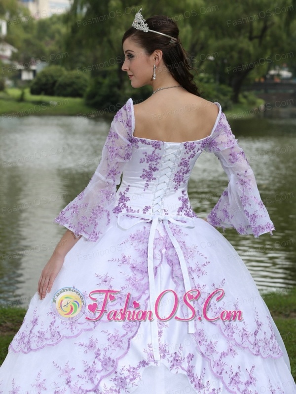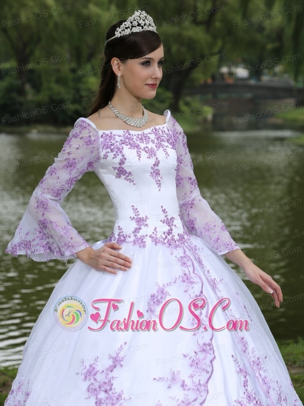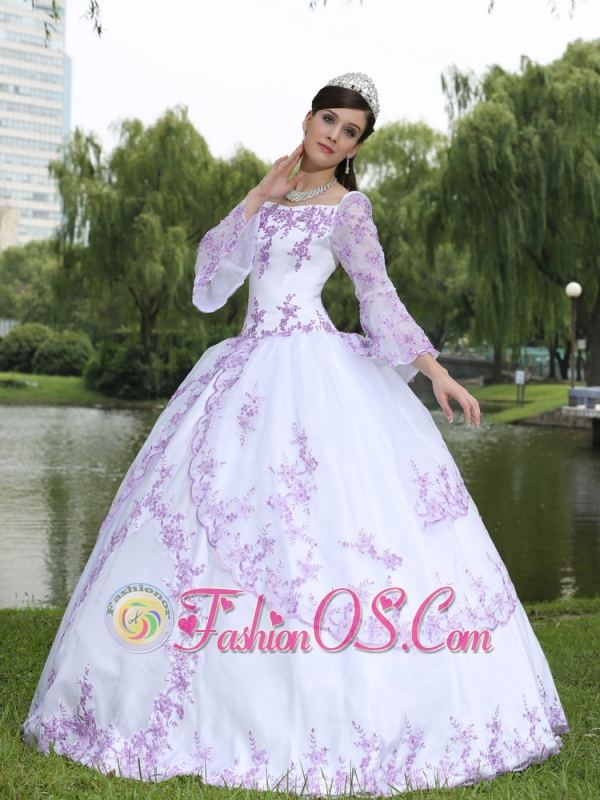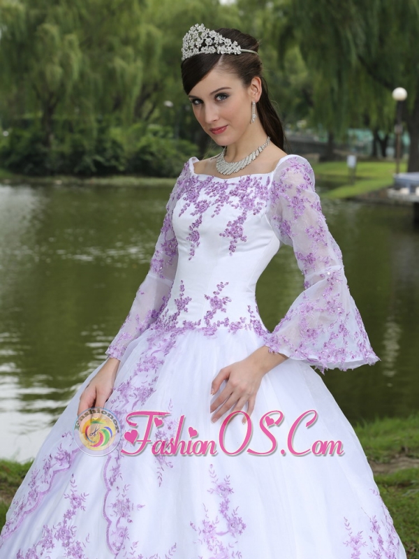 Wholesale Embroidery Long Sleeves Sweet 16 Party Dress With Square Neckline