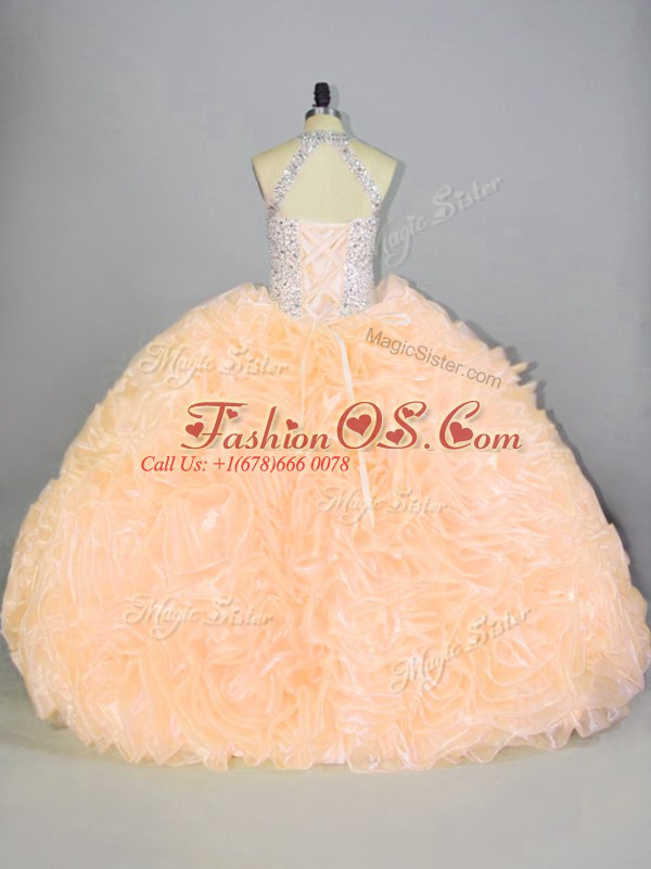 Floor Length Lace Up Sweet 16 Dress Peach for Sweet 16 and Quinceanera with Beading and Ruffles