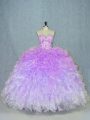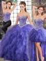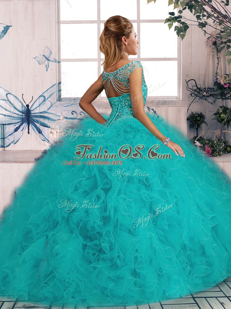 Glamorous Lace Up Off The Shoulder Beading and Ruffles Quinceanera Gown Tulle Sleeveless Brush Train