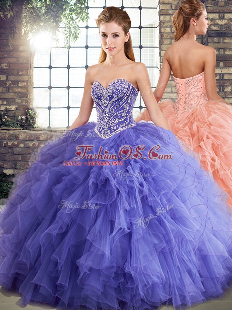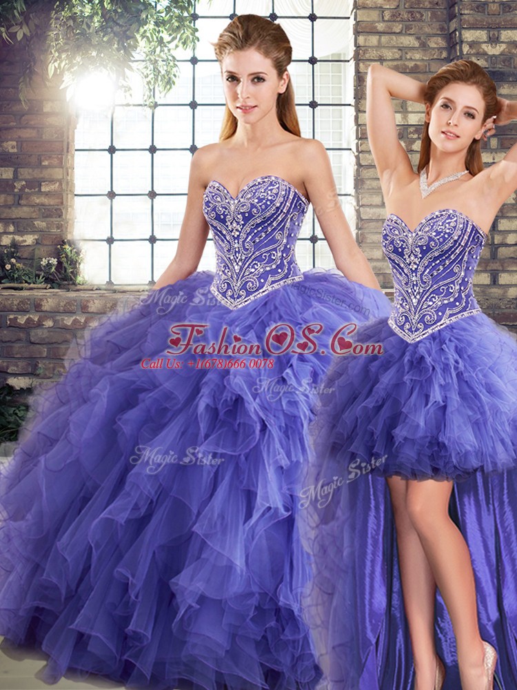 Floor Length Three Pieces Sleeveless Lavender Sweet 16 Quinceanera Dress Lace Up