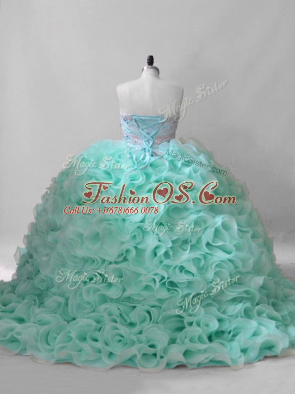 Artistic Lace Up Sweet 16 Dress Apple Green for Sweet 16 and Quinceanera with Beading Brush Train