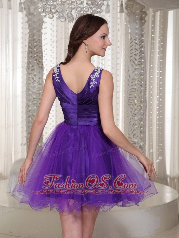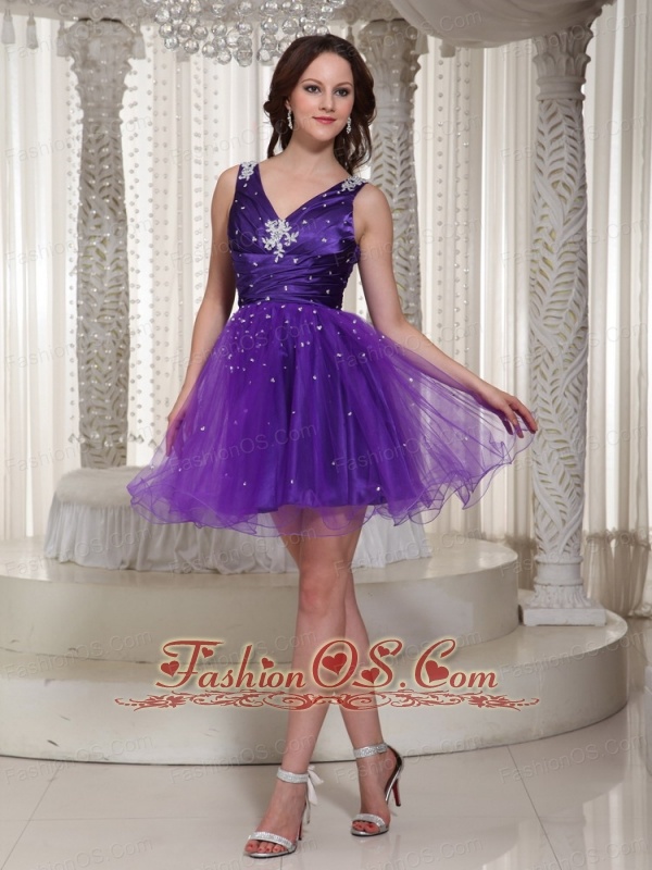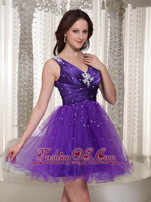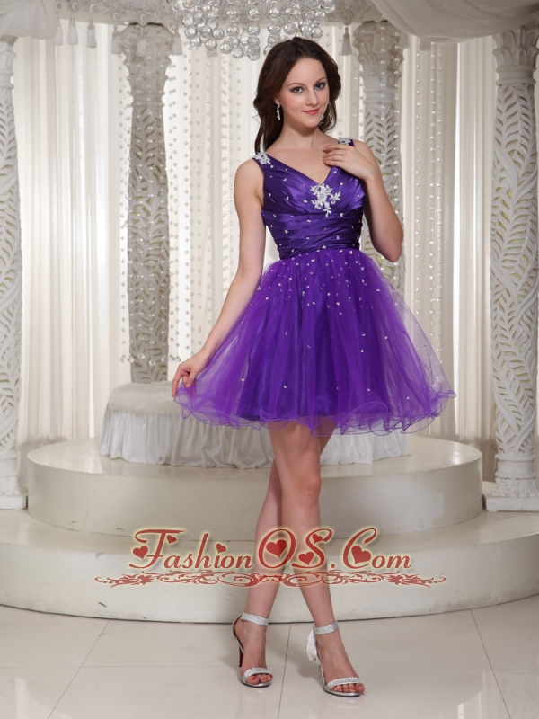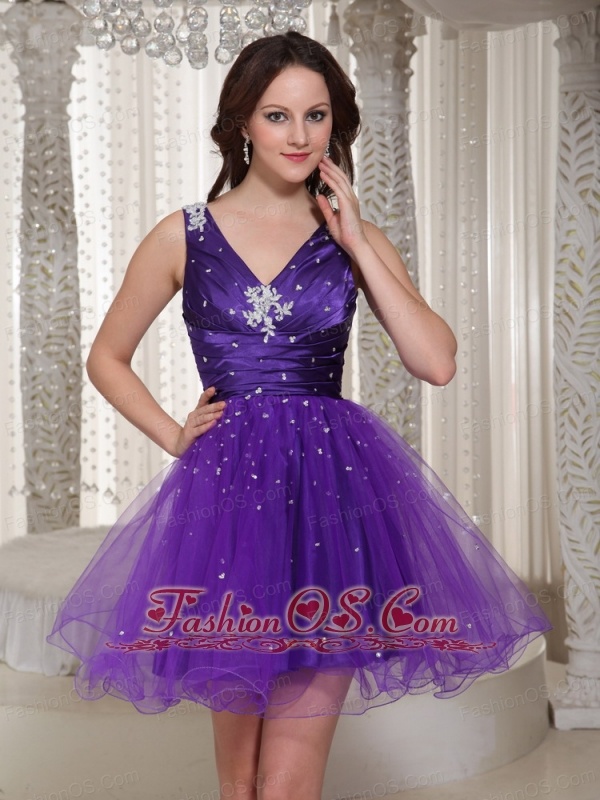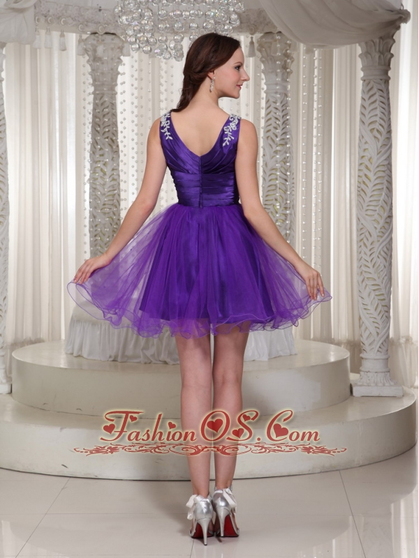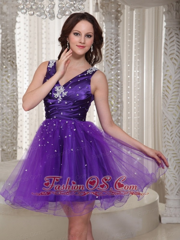 Custom Made V-neck Purple Organza Homecoming Dress With Beaded Bodice