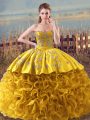 Olive Green Lace Up Quinceanera Gowns Beading Long Sleeves Floor Length