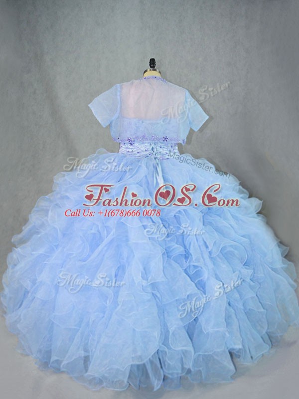 Top Selling Organza Sweetheart Sleeveless Lace Up Beading and Ruffles Sweet 16 Quinceanera Dress in Blue