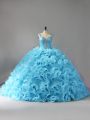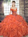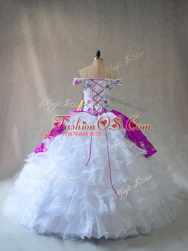 Traditional White And Purple Ball Gowns Organza Off The Shoulder Sleeveless Embroidery and Ruffles Floor Length Lace Up Sweet 16 Quinceanera Dress