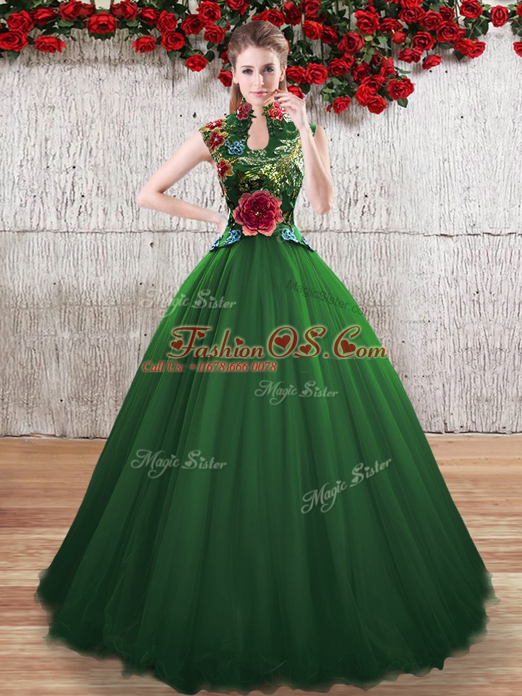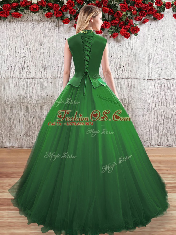 Floor Length A-line Sleeveless Green Ball Gown Prom Dress Lace Up
