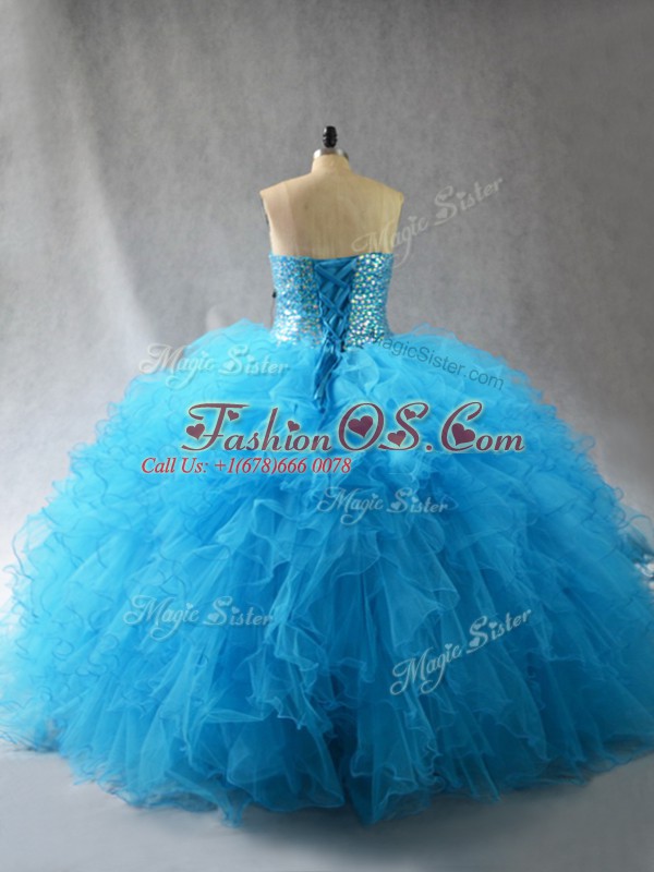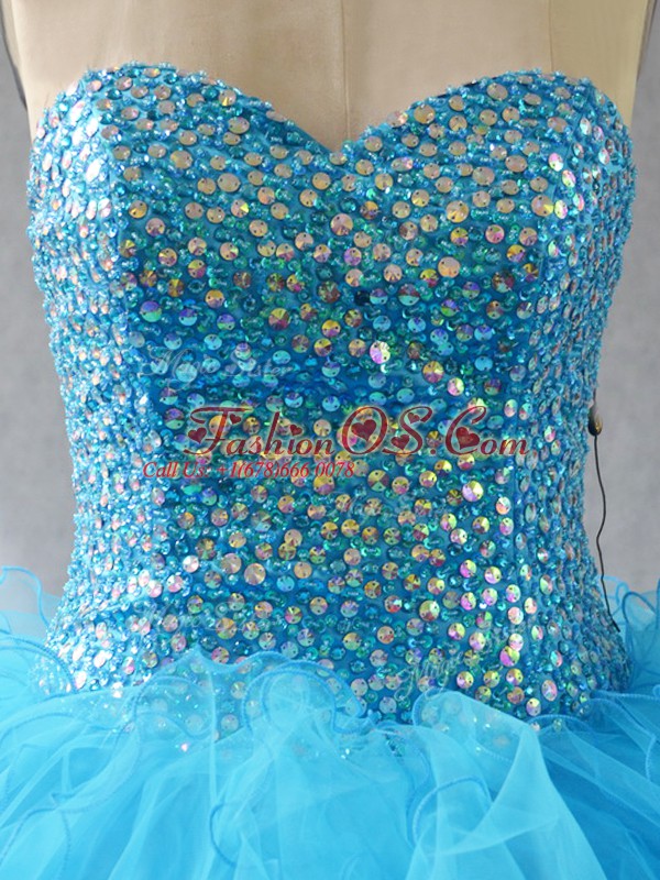 Traditional Baby Blue Sweetheart Neckline Beading and Ruffles Quinceanera Dresses Sleeveless Lace Up
