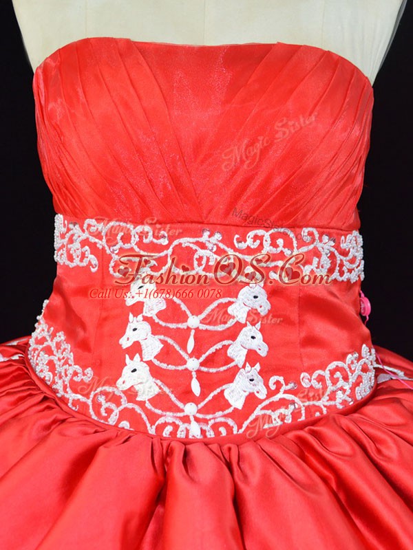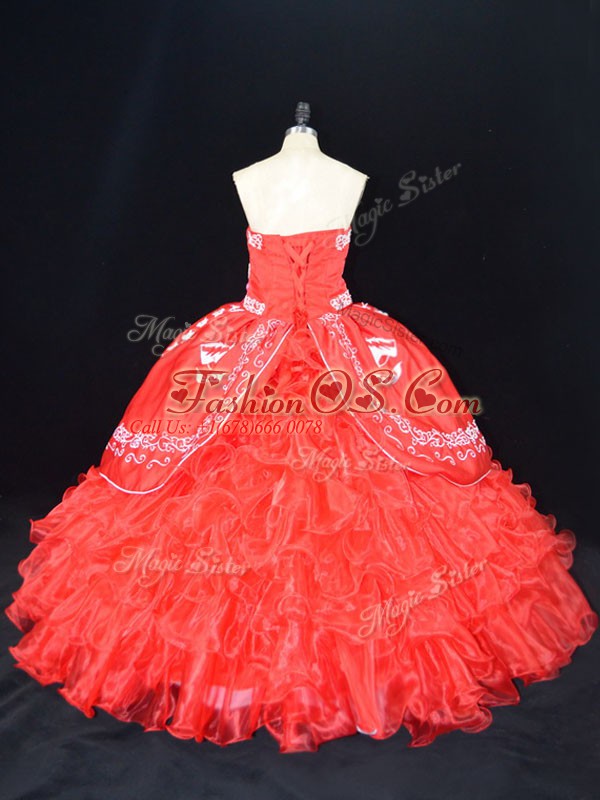 Red Strapless Lace Up Embroidery and Ruffles Quinceanera Dress Sleeveless