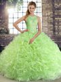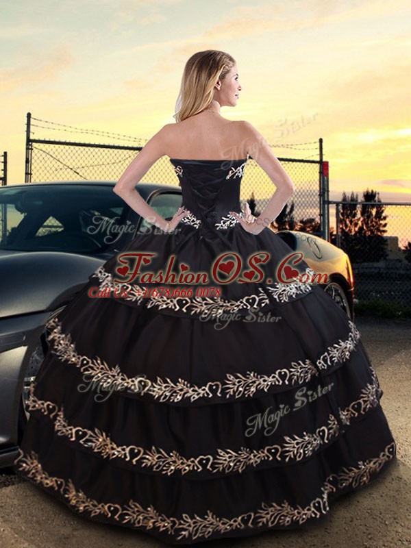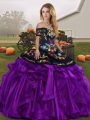 Traditional Sleeveless Embroidery and Ruffled Layers Lace Up Quinceanera Gown with Purple