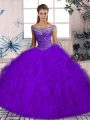 Embroidery and Ruffles Vestidos de Quinceanera Black And Purple Lace Up Sleeveless Floor Length