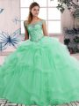 Tulle Sweetheart Sleeveless Brush Train Lace Up Beading and Ruffles Quinceanera Gown in Lavender