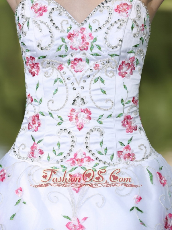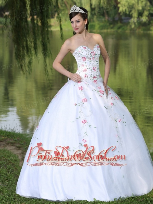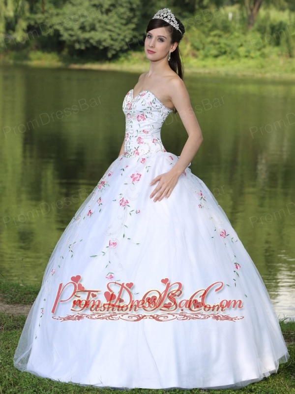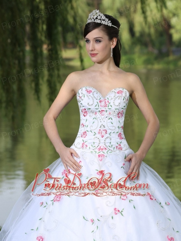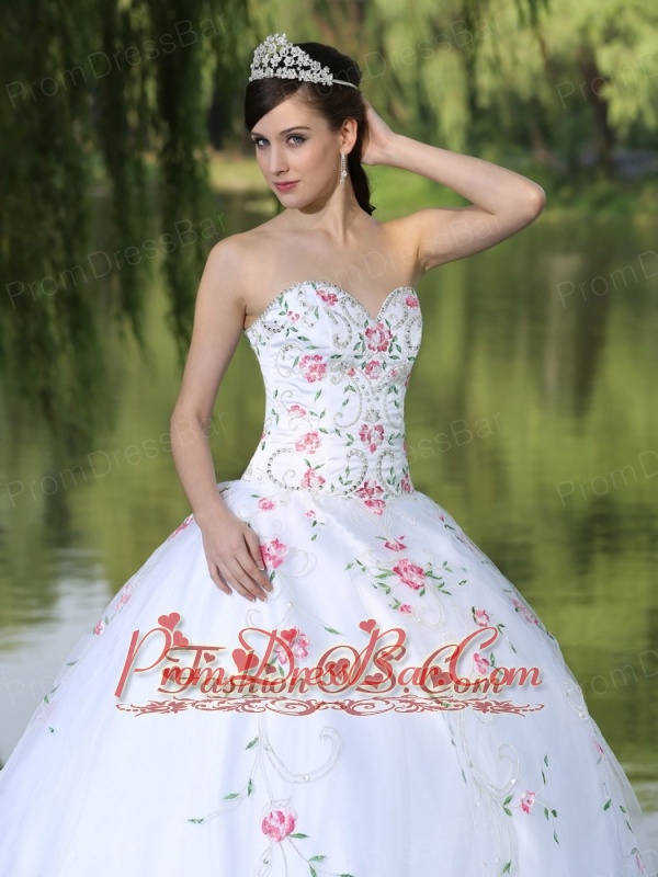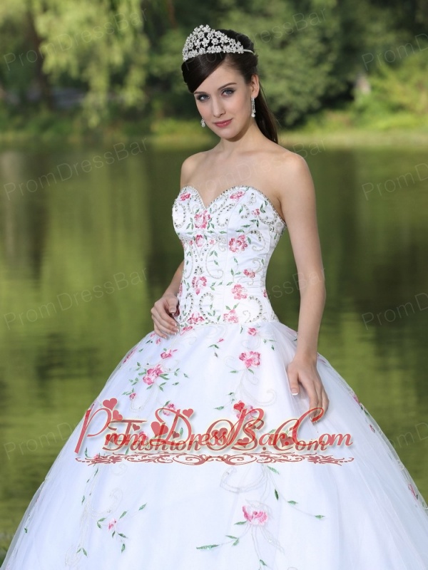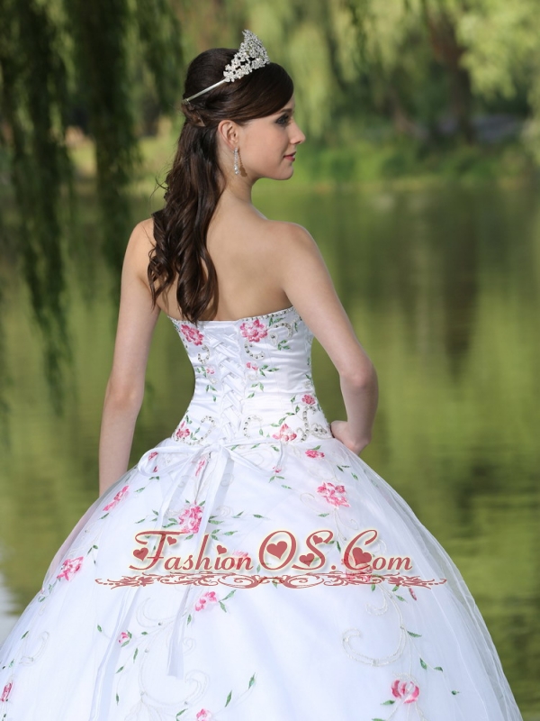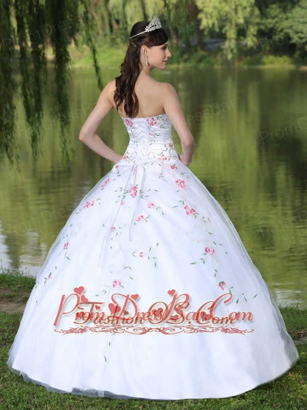 Elegant is the word to written the white strapless quinceanera dress. Strapless dresses are one of the sexier styles on the market today. They show just enough skin to be classy without being too revealing. Appliques defines the bodice throughout and extends to the ball gown in front and back in regular lines. A lace up corset style closure in the back secures the dress in place. The clean lines of this skirt give you the feeling of smooth and soft.