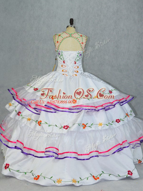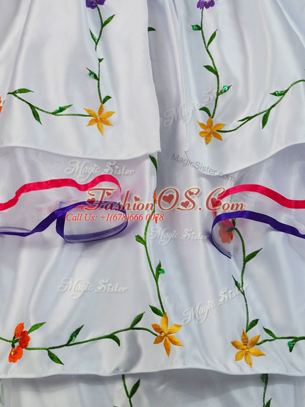 Super Organza and Taffeta Sleeveless Floor Length Vestidos de Quinceanera and Embroidery and Ruffled Layers