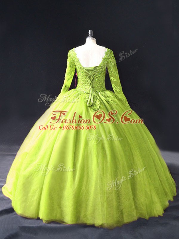 Floor Length Lace Up Sweet 16 Quinceanera Dress Yellow Green for Sweet 16 and Quinceanera with Lace and Appliques
