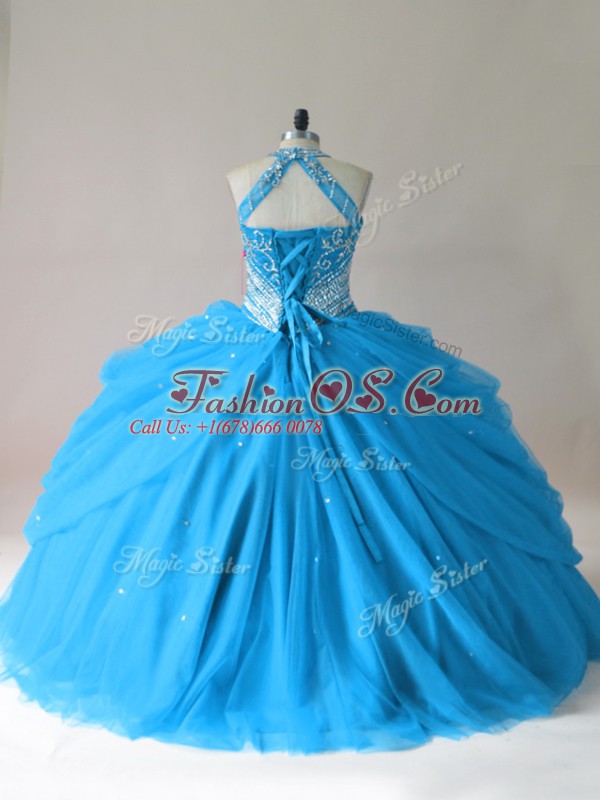 Baby Blue Lace Up Ball Gown Prom Dress Beading Sleeveless Floor Length