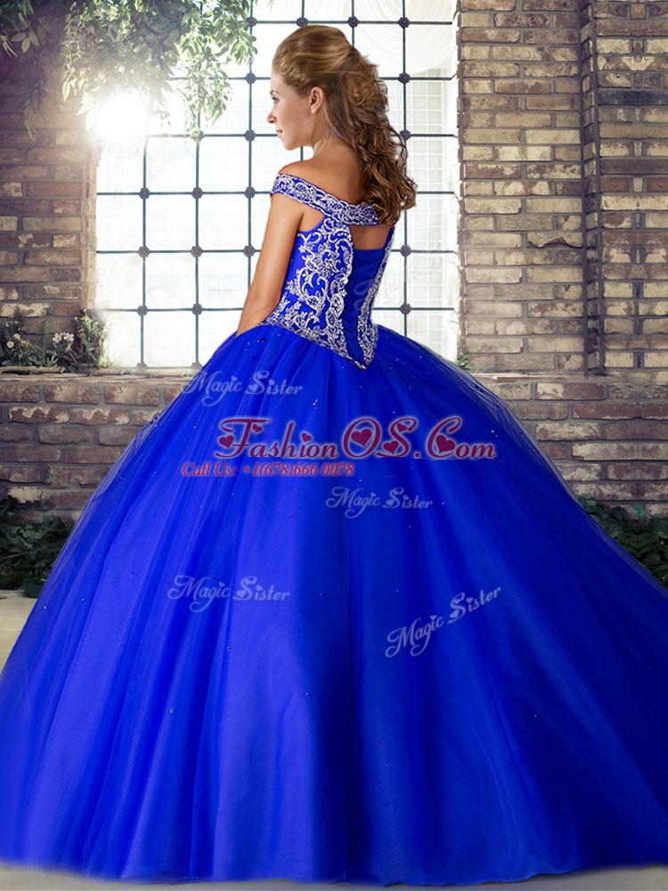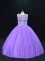 Classical Purple Ball Gowns Tulle Off The Shoulder Sleeveless Beading Lace Up Vestidos de Quinceanera Brush Train
