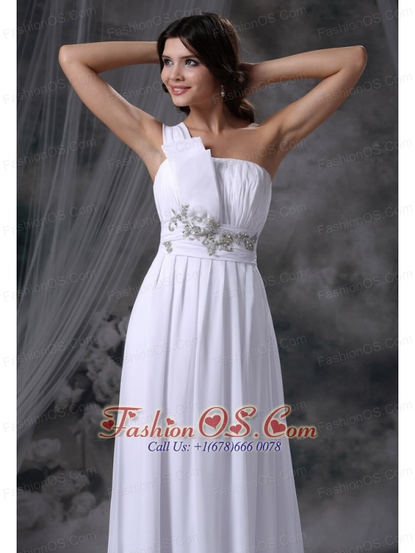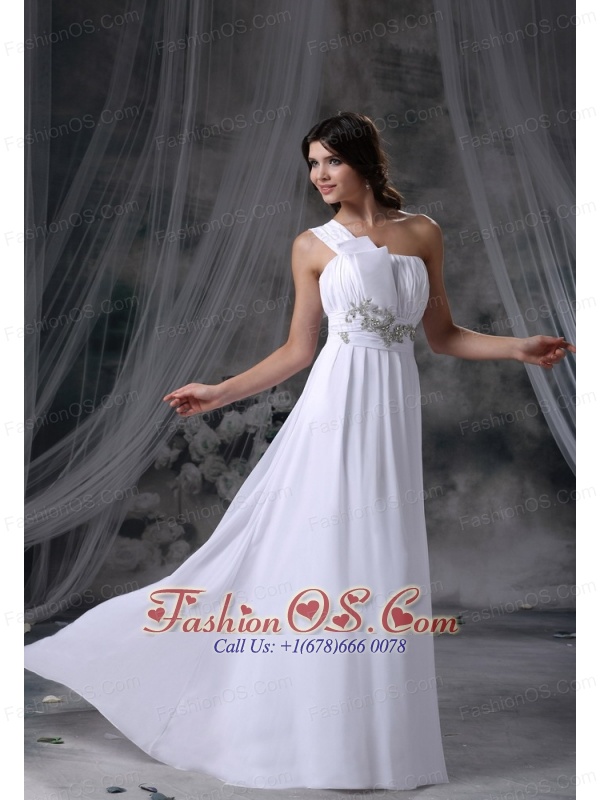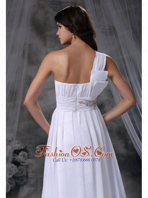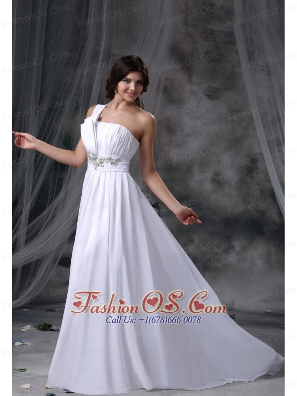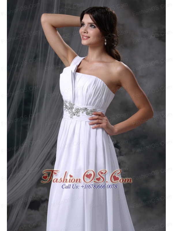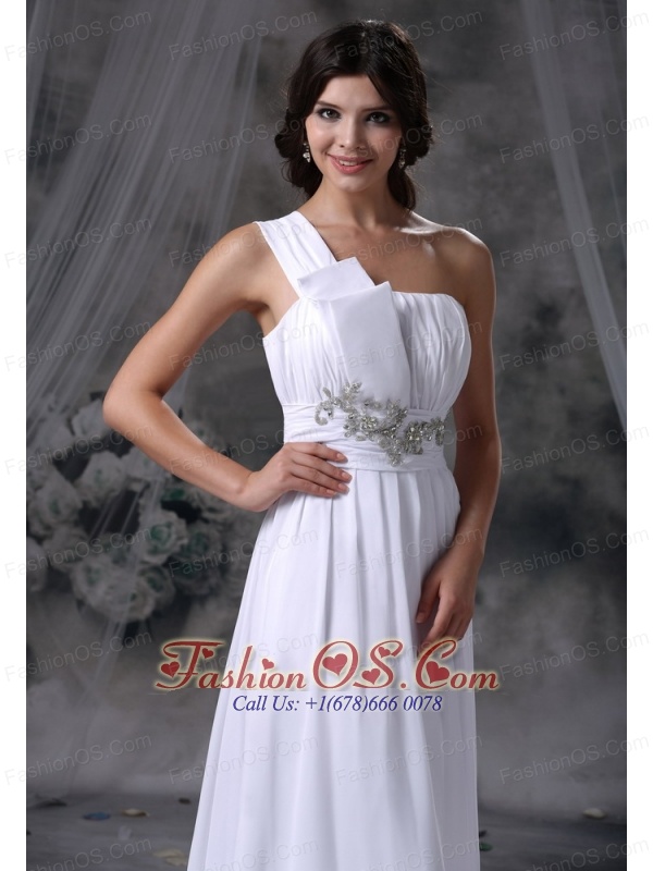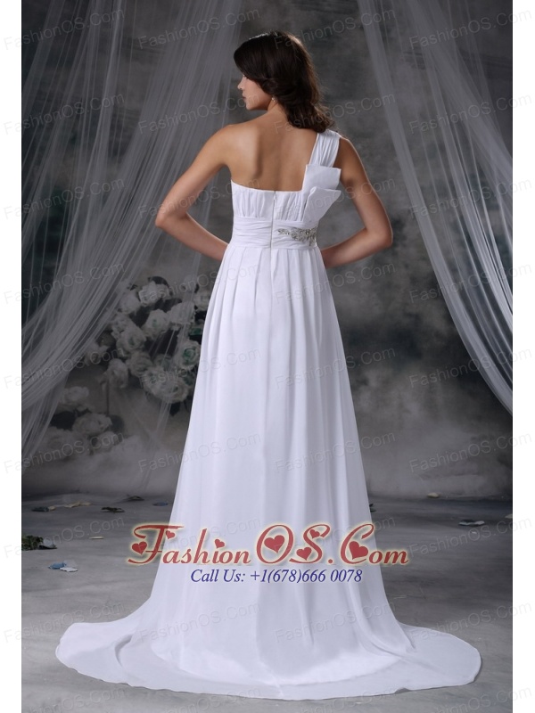 Pocahontas Iowa Beading Decorate Waist Ruched Decorate Up Bodice One Shoulder Brush Train Chiffon For 2013 Beach Wedding Dress