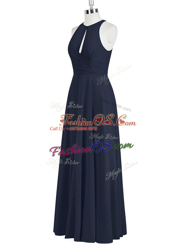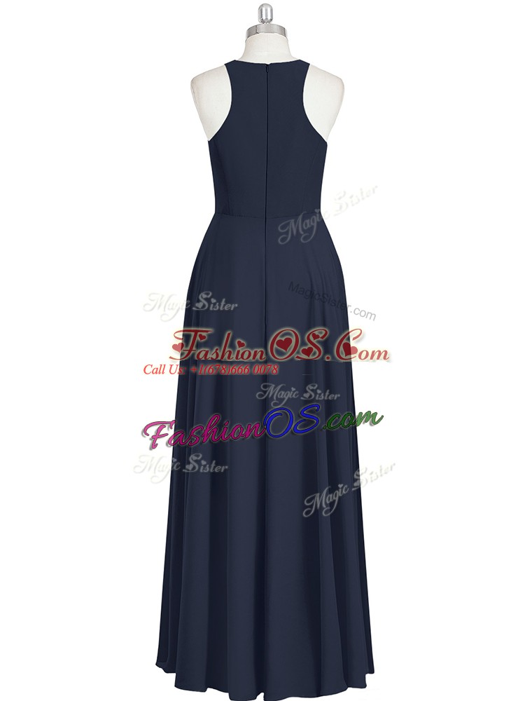 Black Zipper Scoop Ruching Evening Dress Chiffon Sleeveless