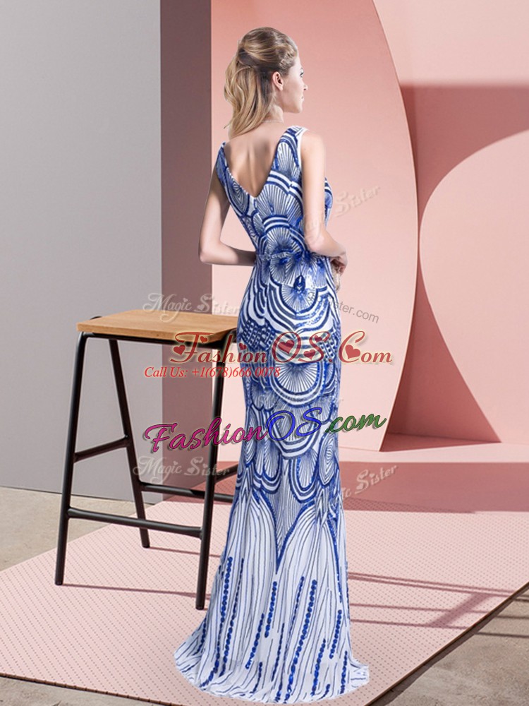 Vintage Blue Mermaid Beading Prom Dress Zipper Sleeveless Floor Length