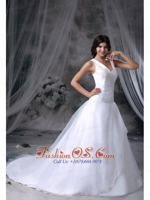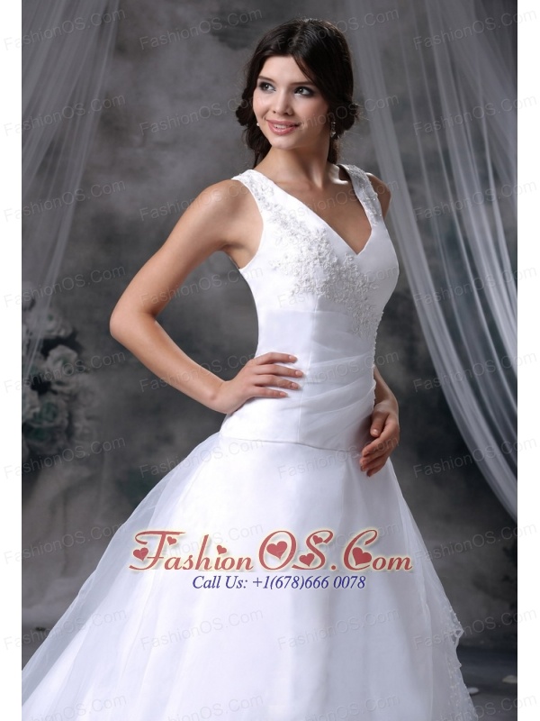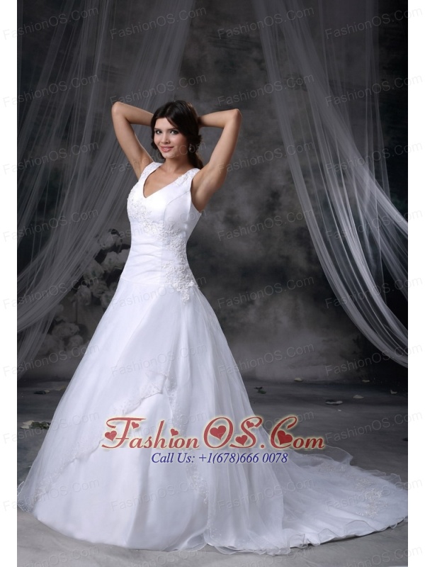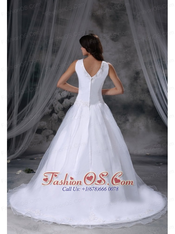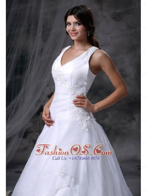 Perry Iowa Appliques Decorate Bust Ball Gown Wedding Dress For 2013 Chapel Train Organza and Satin