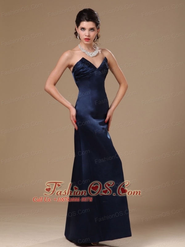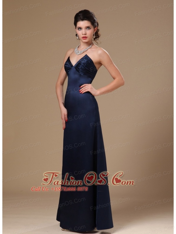 Navy Blue Satin Column V-neck Stylish Formal Evening Prom Gowns For Custom Made In Anniston Alabama