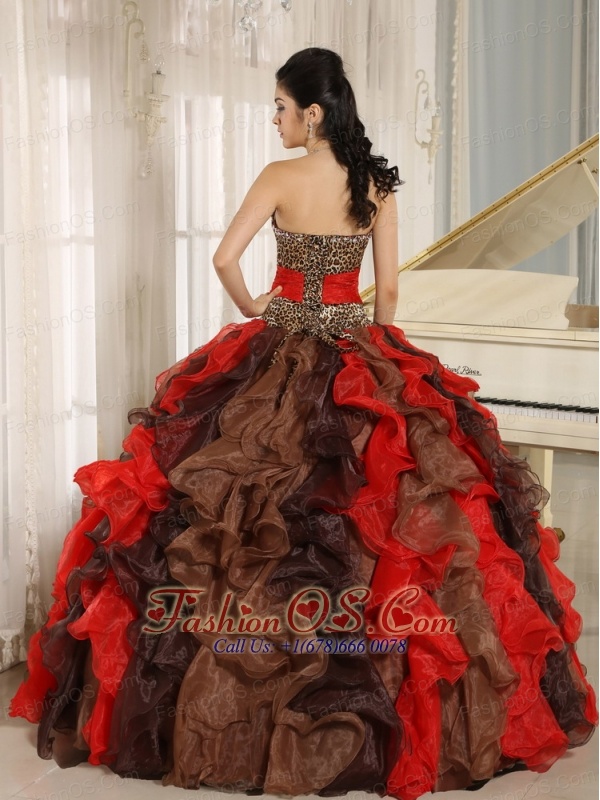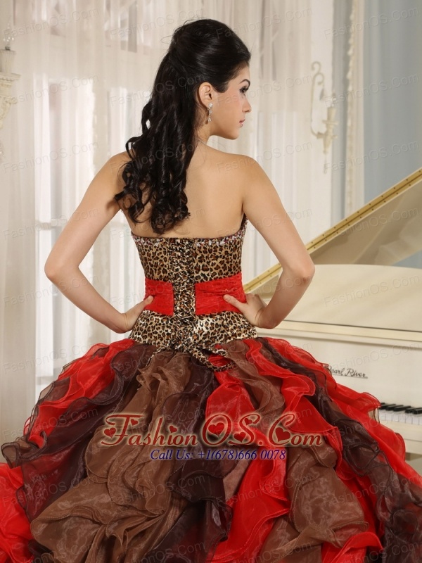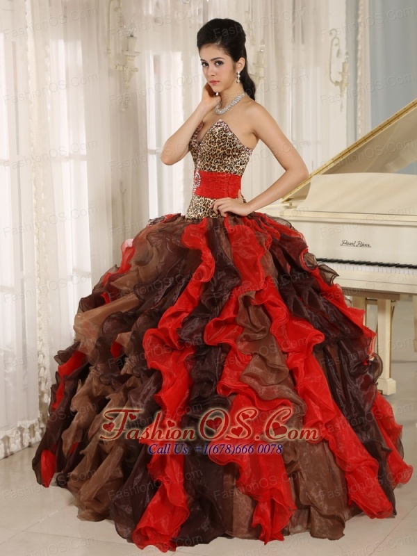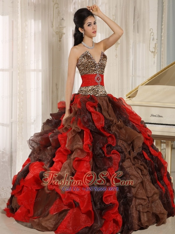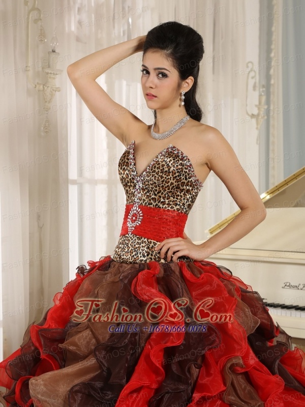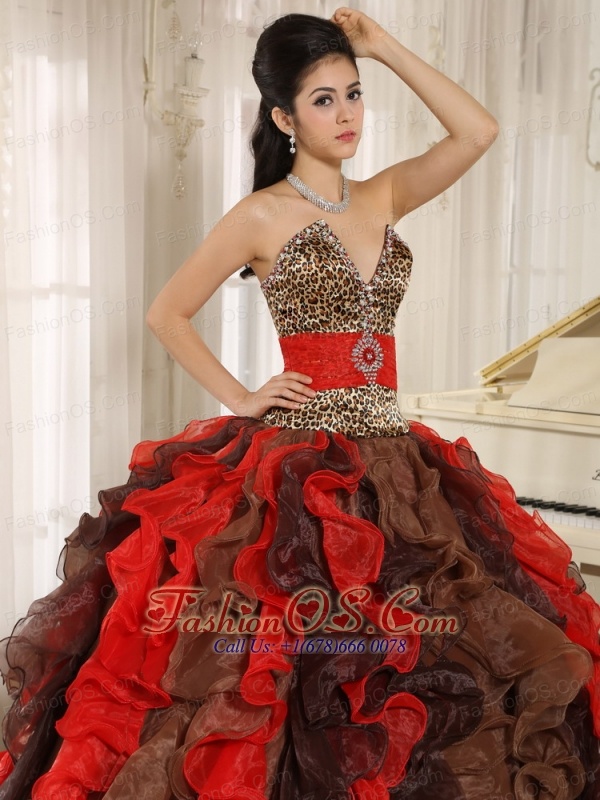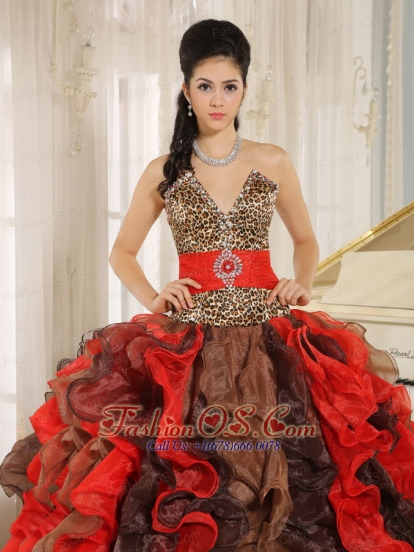 Wholesale Multi-color 2013 Quinceanera Dress V-neck Ruffles With Leopard and Beading In Resistencia