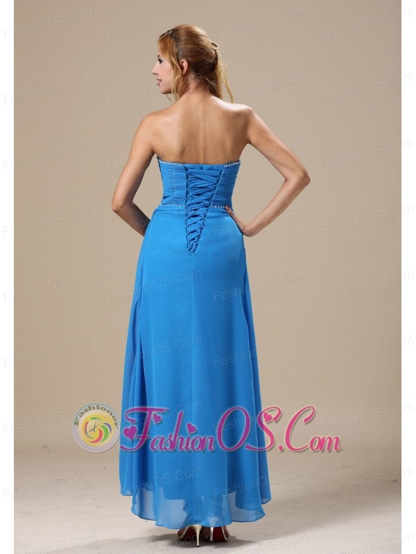 Auburn Hills Beading and Ruch Decorate Bust High Slit Ankle-length Baby Blue Chiffon Simple Style 2013 Dama Dresses for Quinceanera