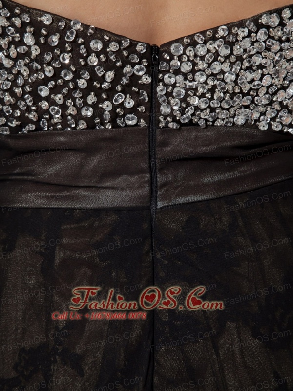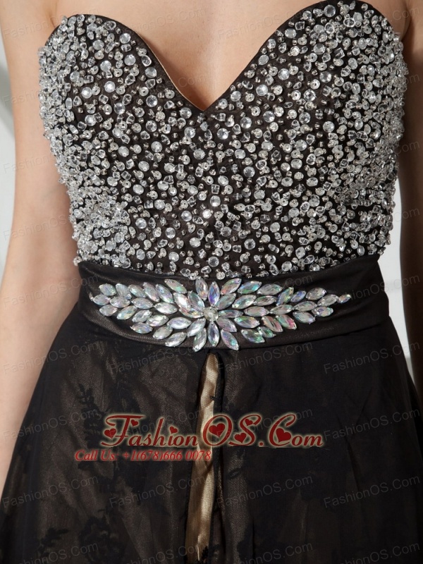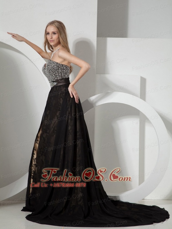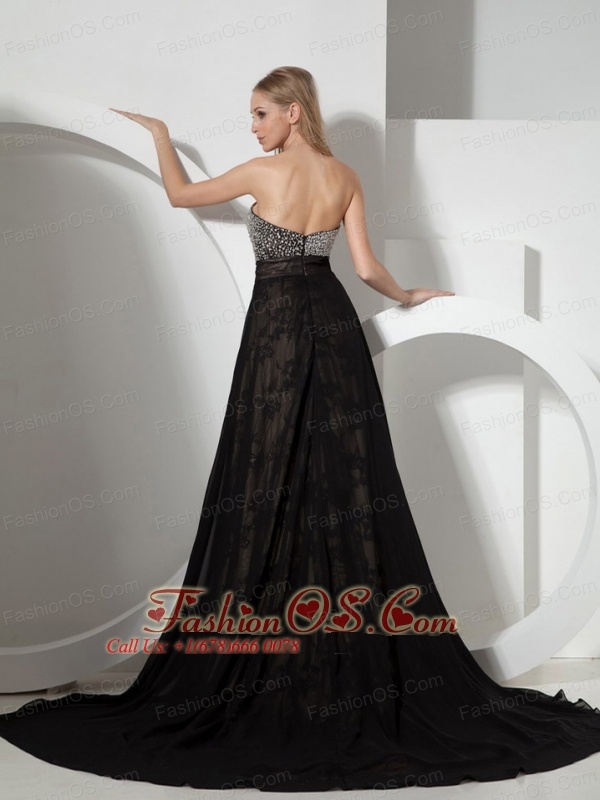 Black Sweetheart Neckline Beaded Decorate Chiffon Evening Dress With Court Train