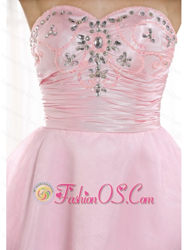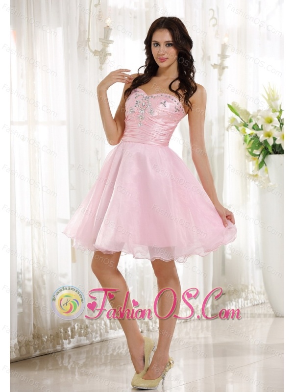 Beaded Decorate Bust Sweetheart Neckline Pink Taffeta and Organza Knee-length 2013 Prom / Homecoming Dress