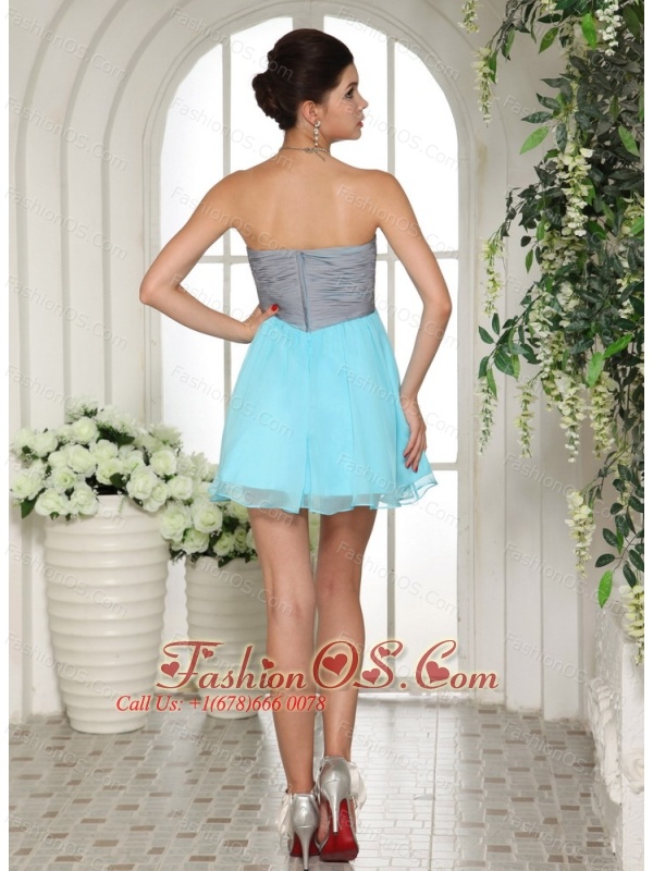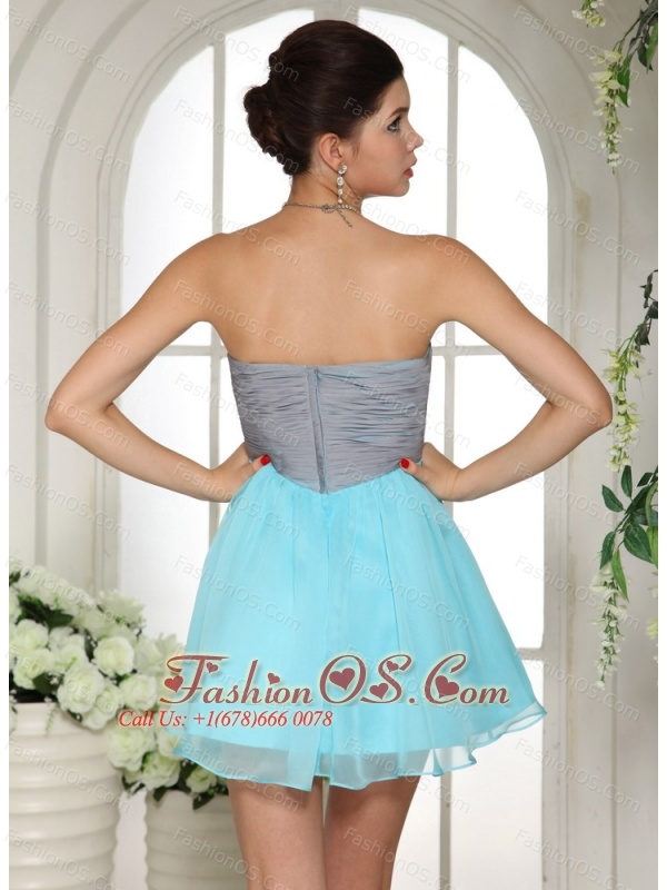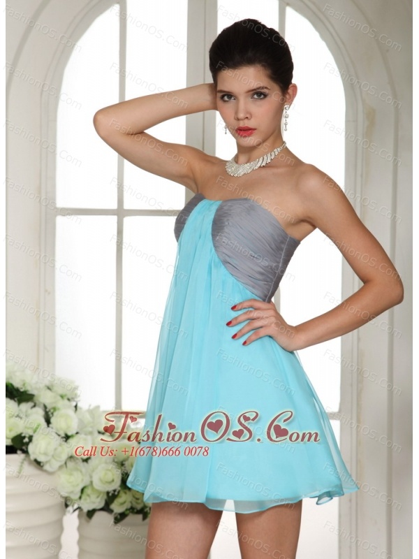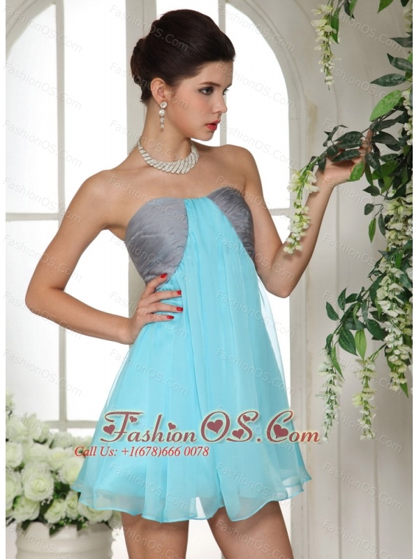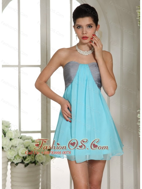 Aqua Blue and Grey Mini-length Club A-line Strapless Cocktail / Homecoming Dress