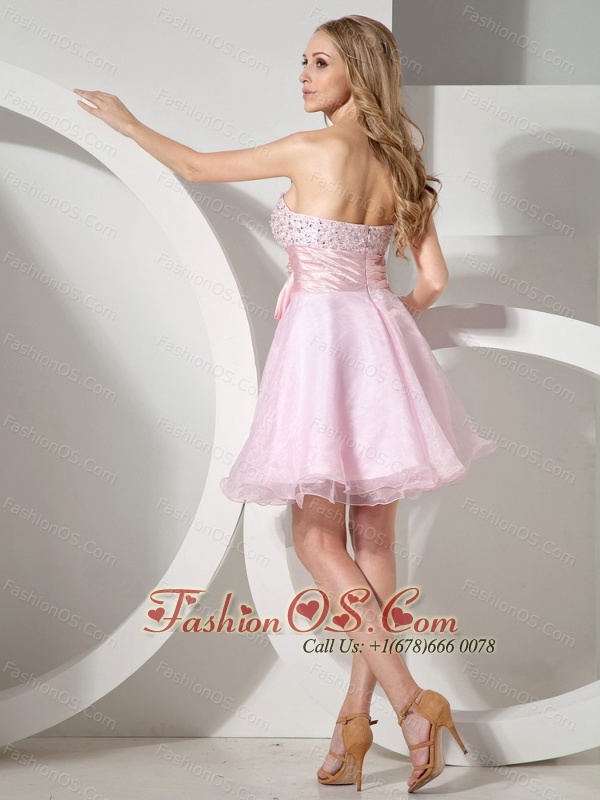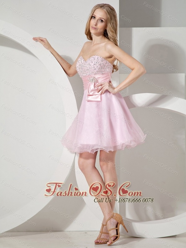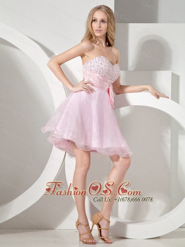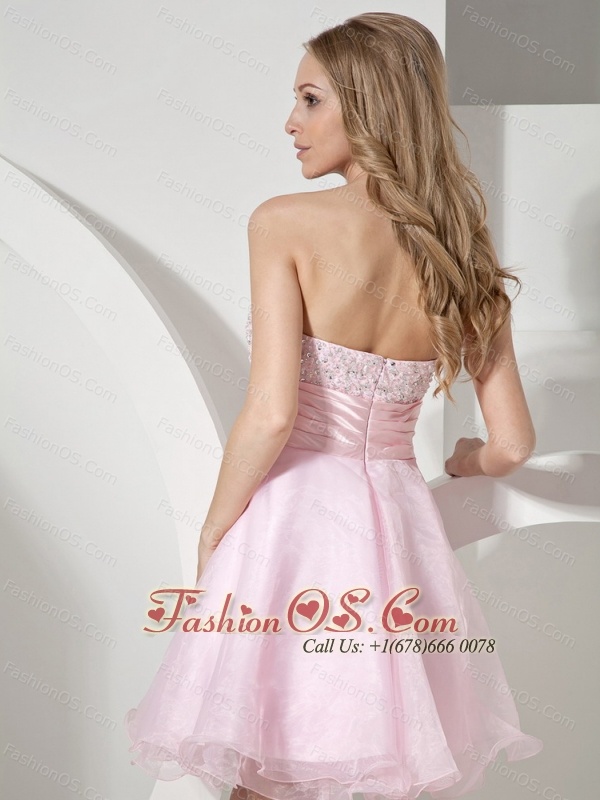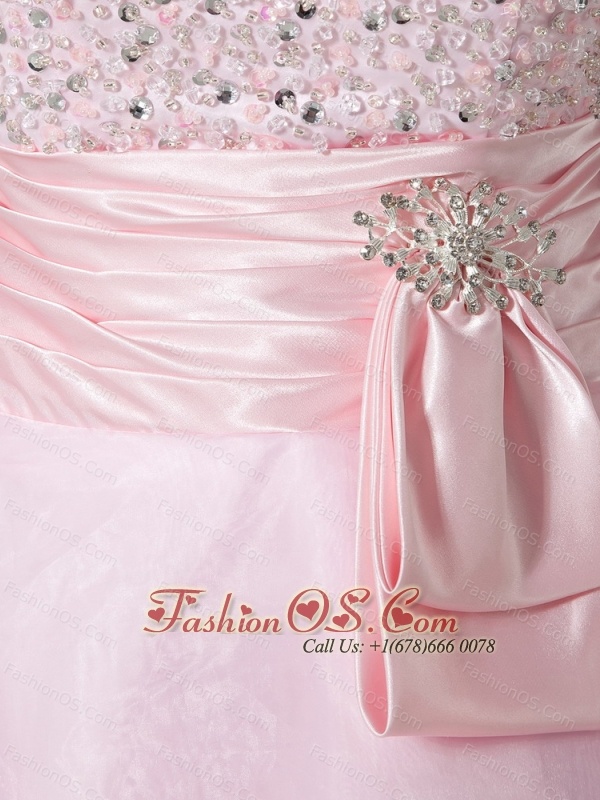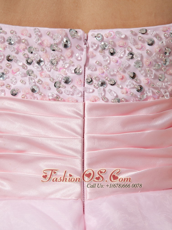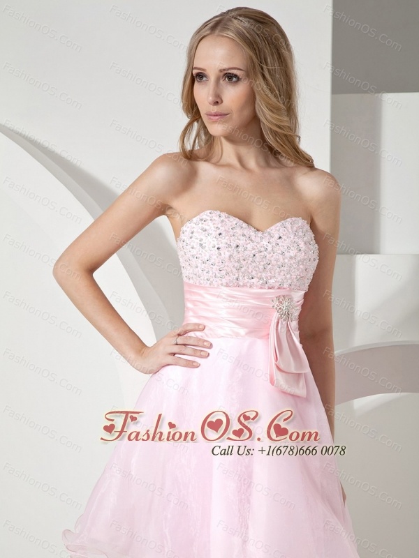 Baby Pink Sweetheart Neckline With Beaded Decorate Organza Princess Prom Dress