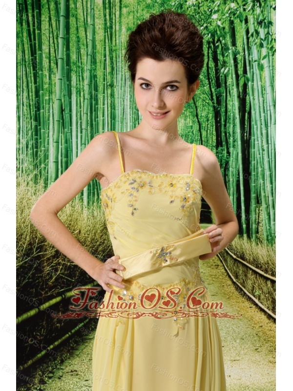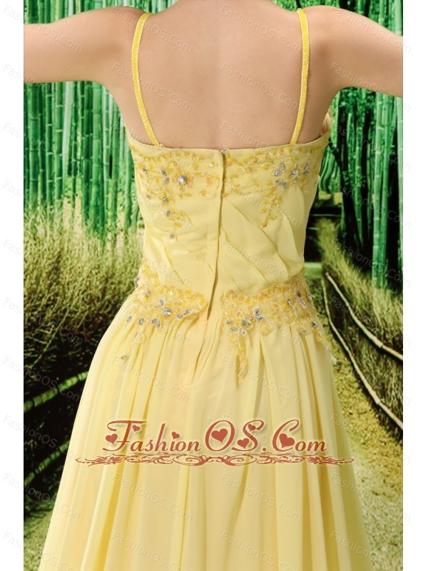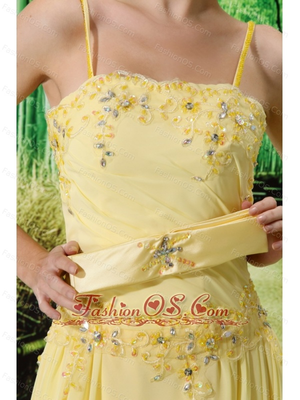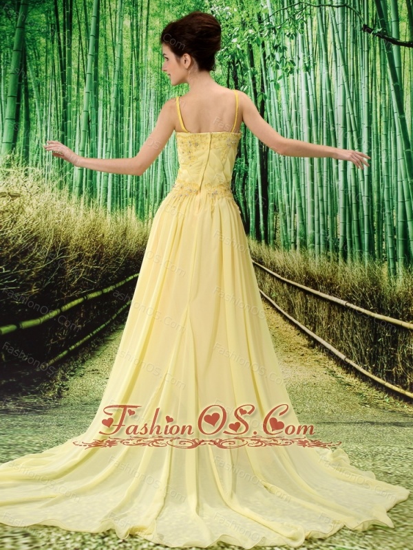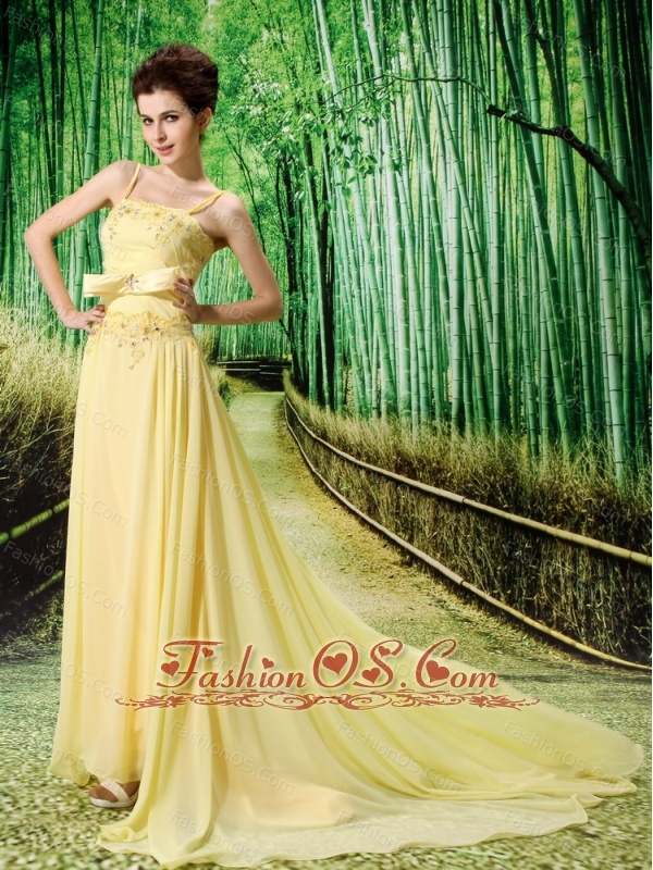 Beading Chiffon Spaghetti Straps Court Train Empire Prom Dress