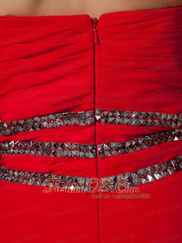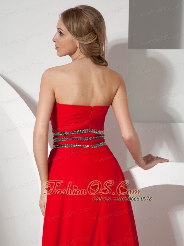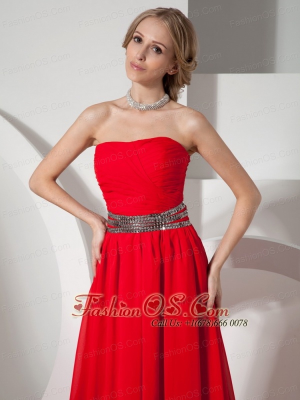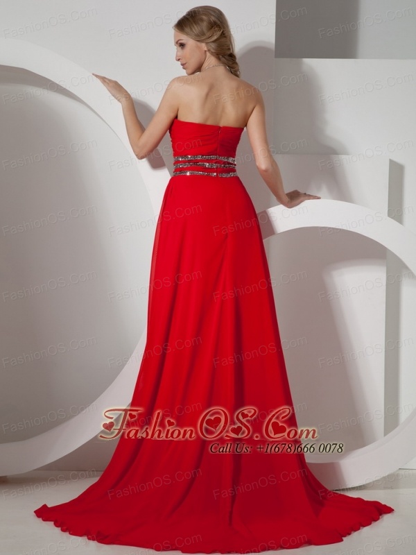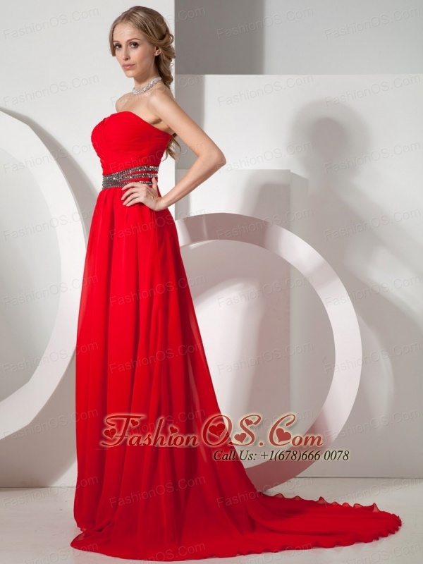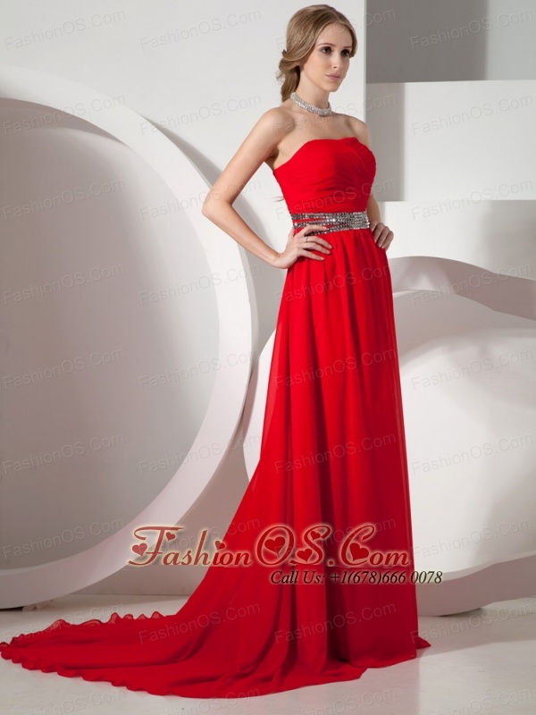 This red prom dress make you the most popular one in the hall. The strapless and marveous beading in the mid-section to bright up the ruched bodice. The soft skirt with a rush train sways beautifully across the floor when you move, as if you're floating on air. A hidden zipper makes for easy off and on and secures the dress in place.