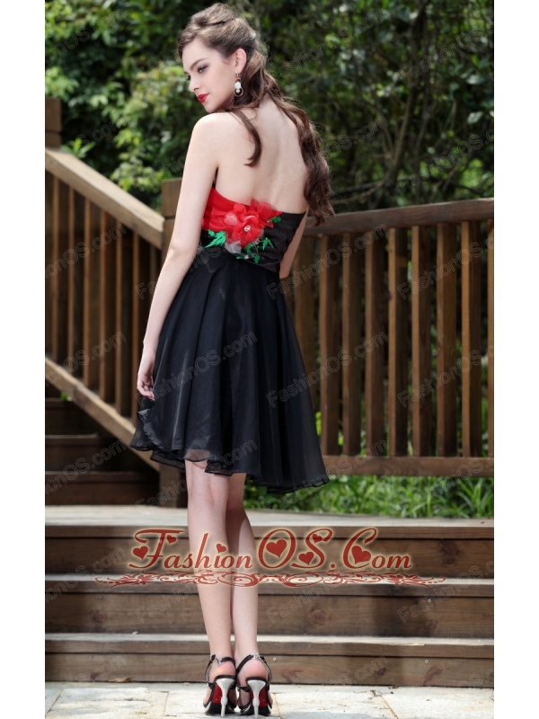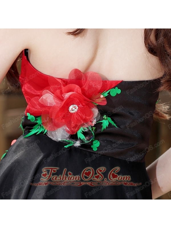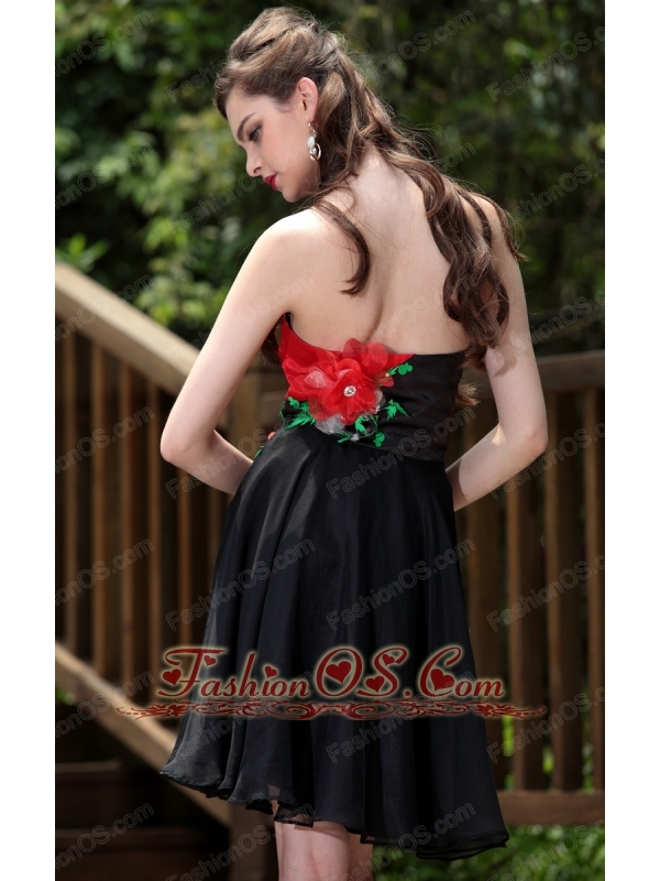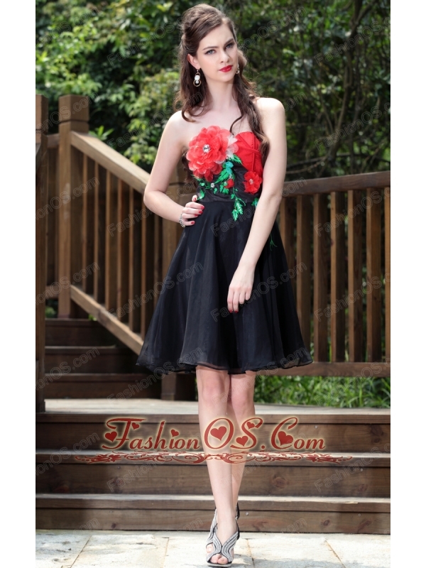 Black A-Line / Princess Sweetheart Knee-length Taffeta and Chiffon Appliques and Hand Made Flowers Prom Dress