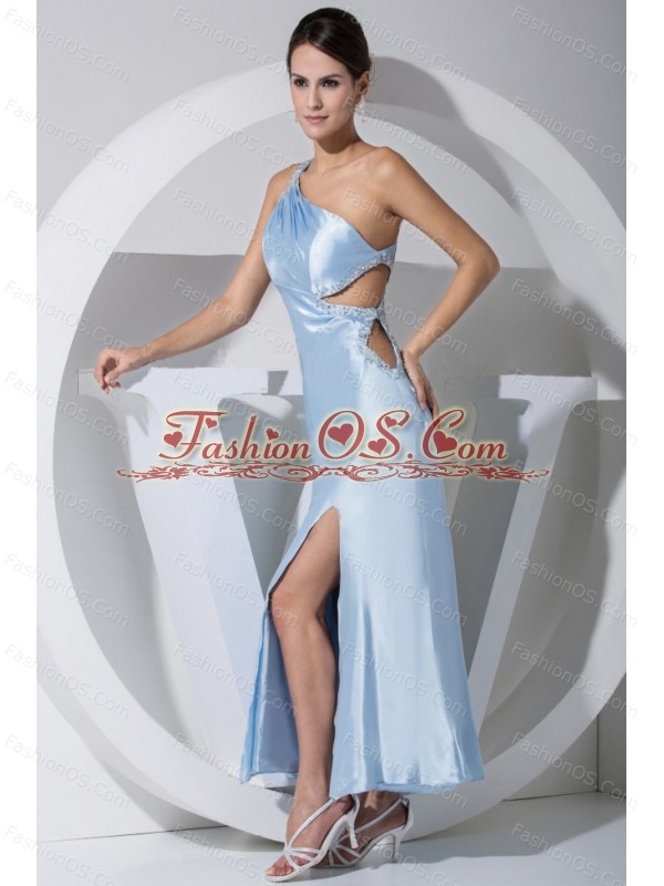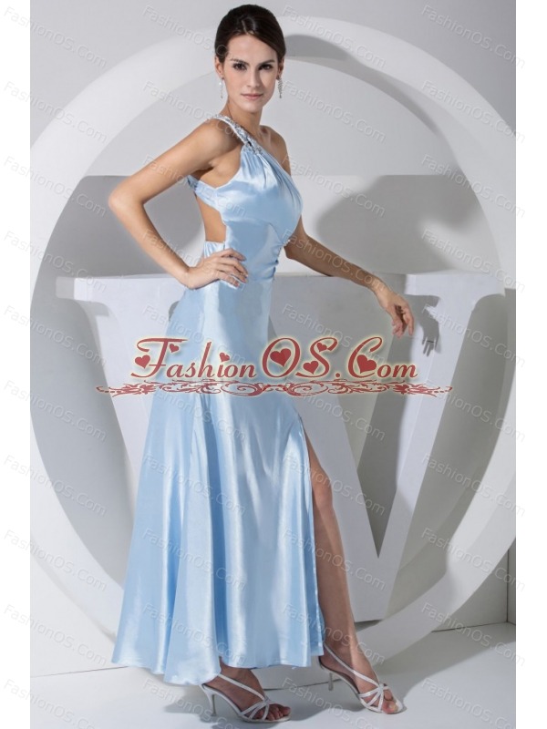 High Slit Beading Decorate Bodice One Shoulder Ankle-length Prom Dress For 2013