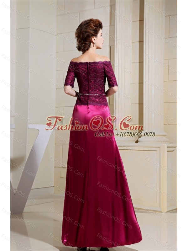Hot Pink Mother Of The Bride Dress With Off The Shoulder and Short Sleeves