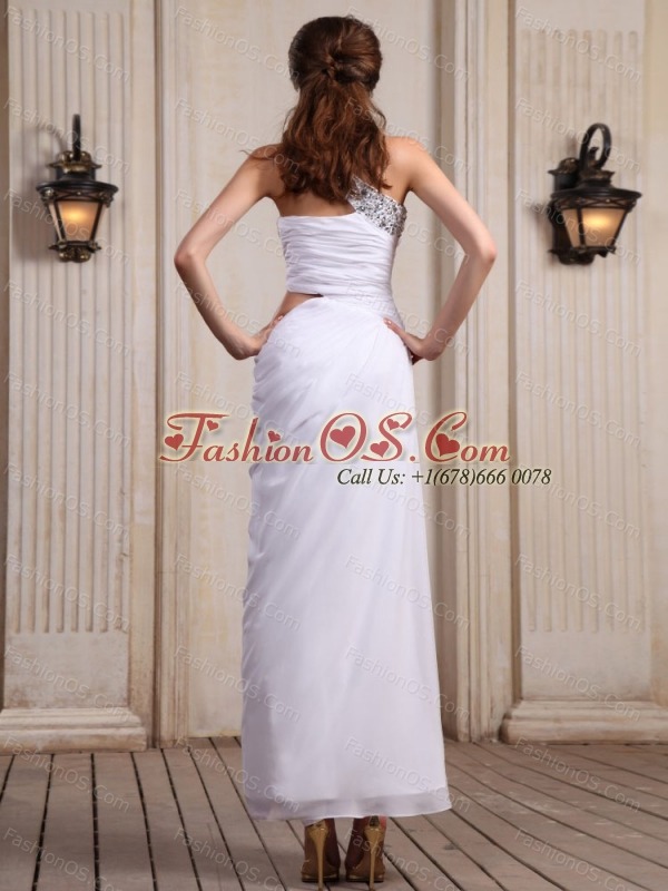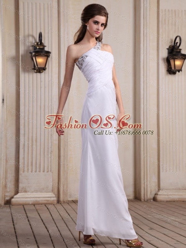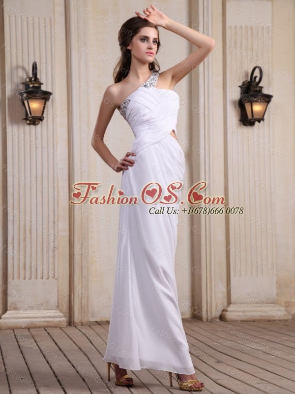 One Shoulder Prom Dress With Beaded Ankle-length Chiffon For Party